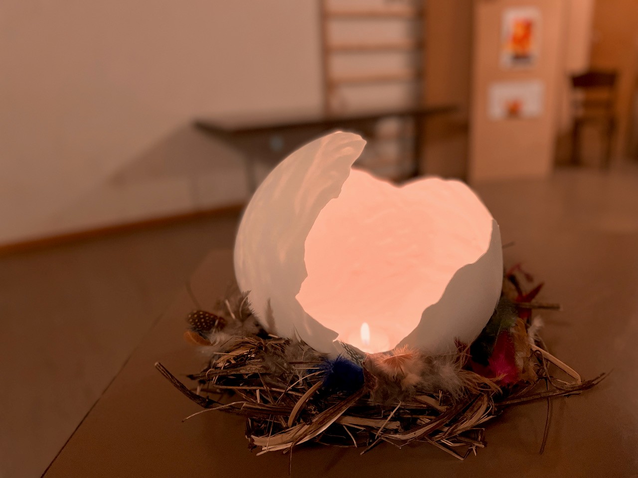 Am frühen Ostermorgen in Matt hatten wir zu unserer Überraschung drei riesengrosse Eier auf unserem reich gedeckten "Zmorgetisch", symbolisch aufgebrochen, mit einem brennenden "Cherzli" drin (siehe Bild), ein handgemachtes Kunstwerk aus Gips von unserer Katechetin Edith Schuler. Nach dem Ostergottesdienst in Elm, in den ich zwei dieser Eier mitgenommen hatte, gab es eine richtige Diskussionsrunde darüber: Wie hat sie das gemacht? Die Gipseier erschienen so geschliffen und echt, mit der Hand kann man nicht so feine und gleichmässige Oberflächen hervorbringen... und die Form? Erstaunlich! Da die Künstlerin nicht mehr zugegen war, konnten wir nur darüber rätseln und staunen.